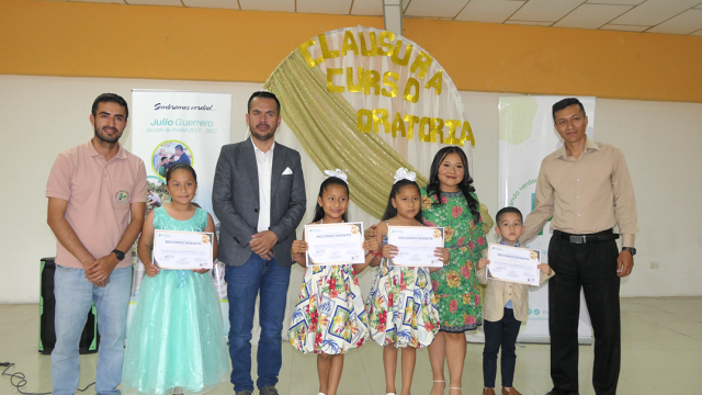 Posteriormente, en Pindal, se llevó a cabo la clausura del curso de Liderazgo y Oratoria “Desde nuestra trinchera: la lucha que dice y hace”, proceso impulsado por el Municipio de Pindal, el Foro de Oradores del Ecuador y la CCE- Loja. Esta iniciativa busca formar líderes locales capaces de incidir de manera positiva en el desarrollo cultural del cantón. En el evento se entregaron reconocimientos a los estudiantes por su destacada participación y compromiso.