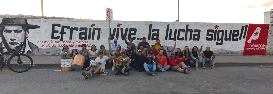 Loja | En la ciudad de Loja, un grupo de ciudadanos, artistas y organizaciones sociales realizó una jornada de expresión artística en homenaje a Efraín Fuerez, como parte de las manifestaciones pacíficas que se desarrollan a nivel nacional. La actividad consistió en la pintura de un mural en una de las paredes de la Quinta Leonor, espacio históricamente vinculado con la difusión de mensajes y propaganda política.