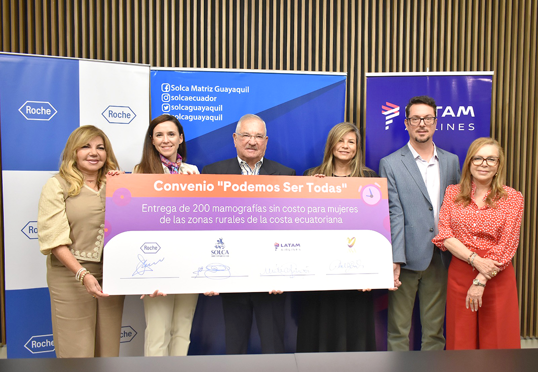 Ecuador | Roche Ecuador, SOLCA Guayaquil, LATAM Airlines y en alianza con Fundación Ana, suman fuerzas para facilitar el acceso a mamografías sin costo en zonas urbanas de Guayaquil, promoviendo el diagnóstico temprano y la prevención. La iniciativa, denominada “Podemos ser todas”, tiene como objetivo realizar cerca de 200 mamografías gratuitas y brindar charlas educativas y jornadas diagnósticas.