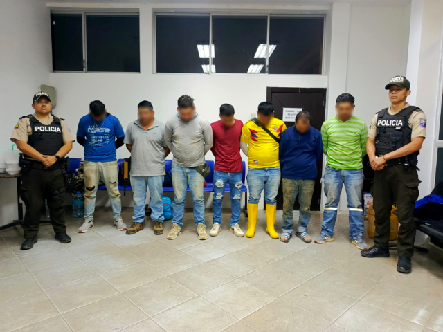 Loja | La Policía Nacional del Ecuador, en coordinación con las Fuerzas Armadas, ejecutó un operativo de control el 08 de octubre de 2025, en el Distrito Macará, que permitió la aprehensión de siete ciudadanos por el presunto delito de actividades ilícitas relacionadas con recursos mineros.