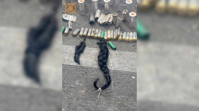 La fotografía muestra dos trenzas junto a las bombas lacrimógenas utilizadas por la fuerza pública para reprimir a los manifestantes.