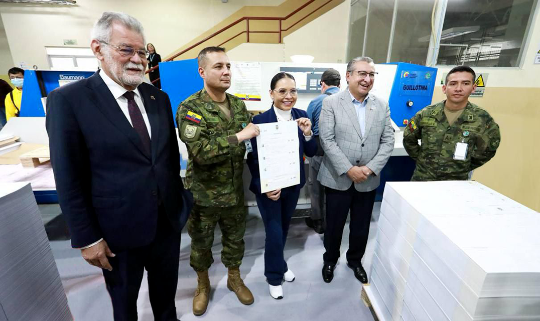 Ecuador | Este 23 de octubre, las autoridades del Consejo Nacional Electoral (CNE) y del Instituto Geográfico Militar (IGM), informaron el avance de la impresión de papeletas y documentos electorales para el Referéndum y Consulta Popular 2025.