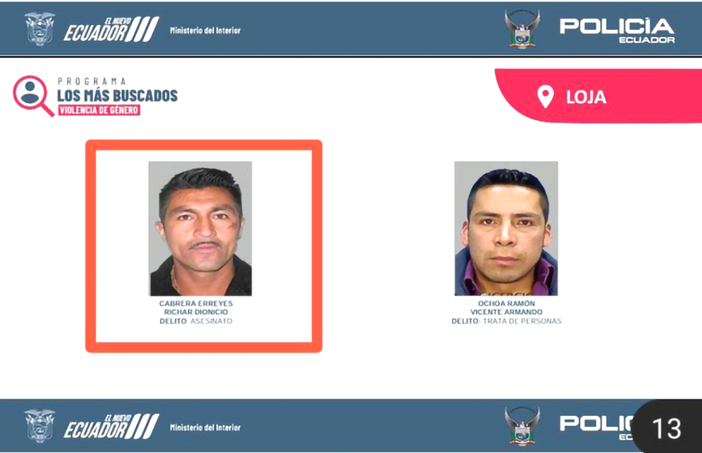 Ecuador | Richar Dionisio C. E., considerado el más buscado de Loja por el as3sinato de su pareja ocurrido en 2011, fue extraditado desde Estados Unidos y arribó este viernes a Guayaquil, informó el ministro del Interior John Reimberg.