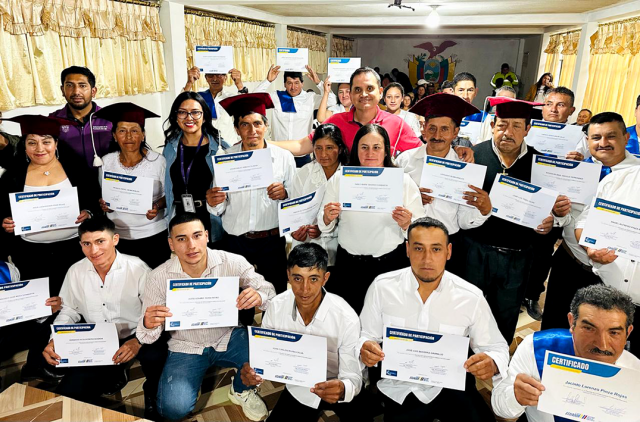Graduados de la Escuela de Fortalecimiento Productivo Pecuario (EFPP) en la parroquia Guachanamá, cantón Paltas.