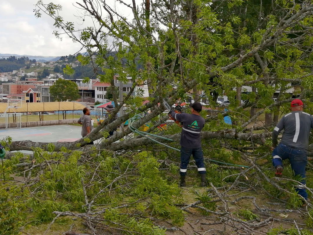 Loja | Como una medida de prevención, la Dirección de Gestión Ambiental hizo la intervención de dos árboles de la especie Fraxinus chinensis, ubicados en el Parque Bernabé Luis, junto a las canchas deportivas.