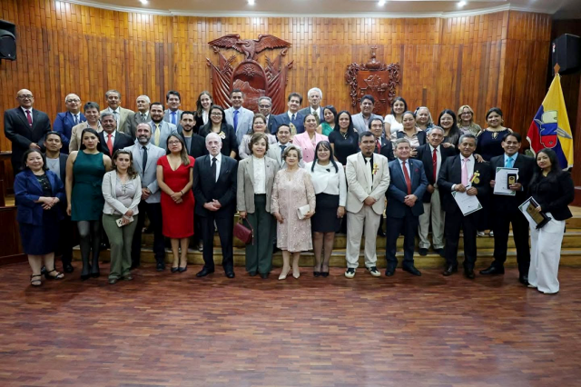 Socios y homenajeados formaron parte de la Sesión Solemne de la UNP de Loja. Foto: Álex Benítez
