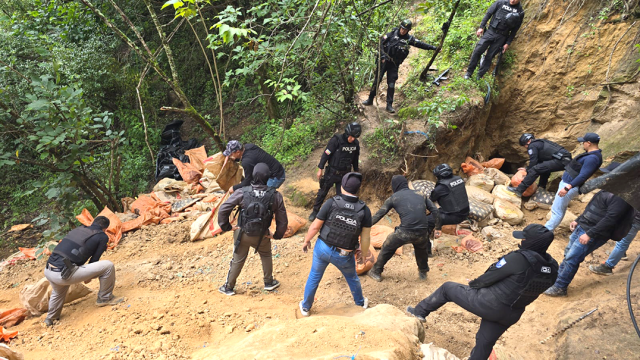 Durante la intervención, los servidores policiales localizaron evidencia asociada a presunta minería ilegal, la cual consistente en:
