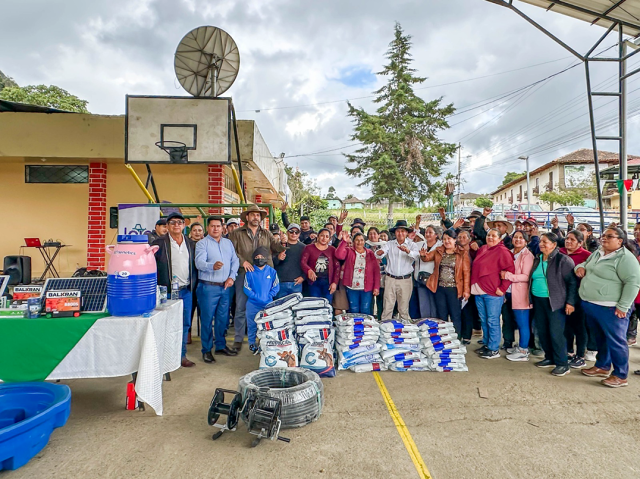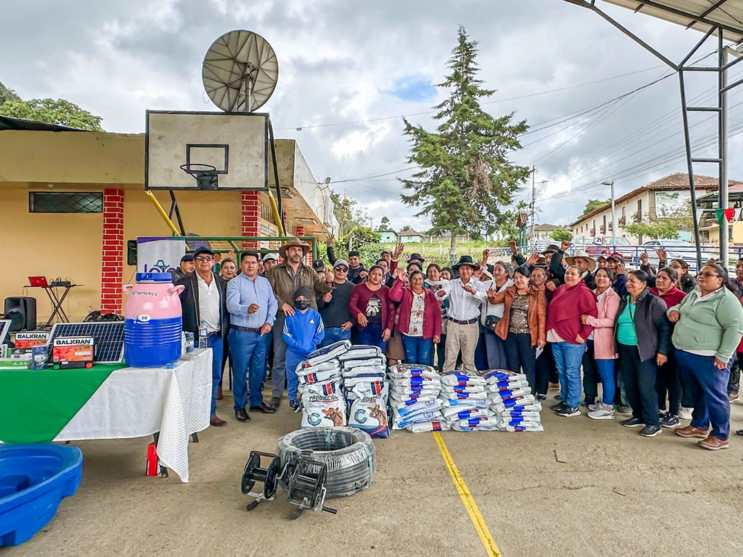 Mario Mancino, prefecto de Loja, junto a productores de la parroquia Santiago.
